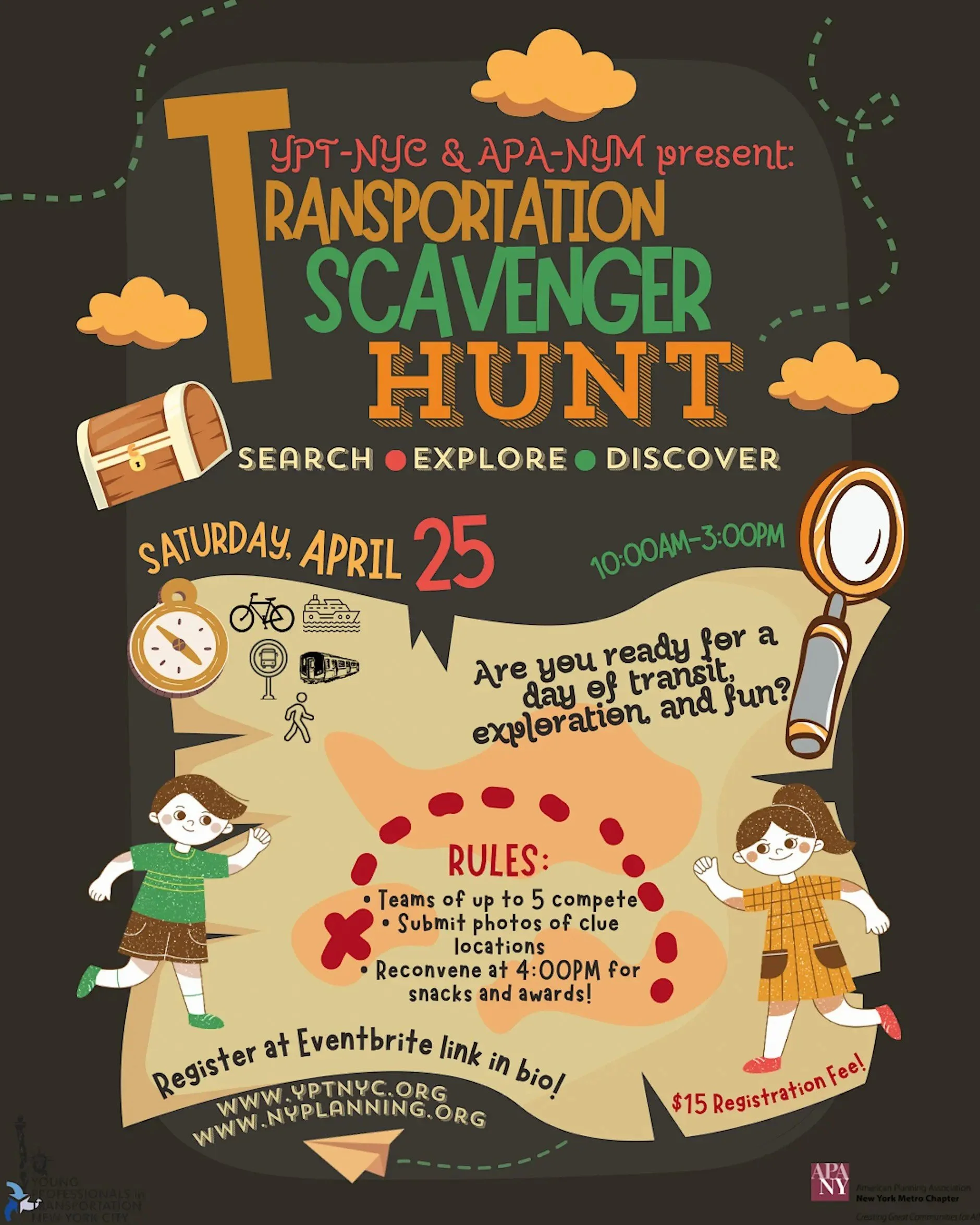 Teams of up to 5 people will compete for a chance to be crowned transportation scavengers-in-chief! We'll meet at Bowling Green at 10:00 am.